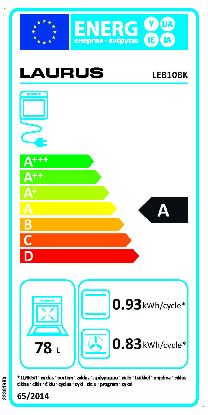 Energieeffizienzklassen und Spektren: Backöfen, Herde und Dunstabzuge A+++ - D. Geschirrspuler und Kuhl-/Gefrierschränke A - G und Leuchtmittel A++ - E.